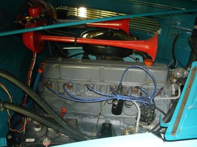Motor: z.Z ist noch ein 250 ci Chevy 6 Zylinder mit 100-150PS verbaut. Getriebe: GM TH 350 3 Gang Automatik. Räder Chevy G20. Der Rest ist soweit recht orginal.
